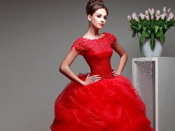 Пышноватое красноватое платьице.