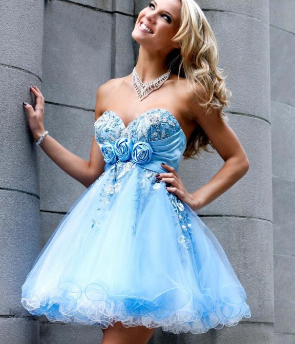 Краткий голубой наряд.