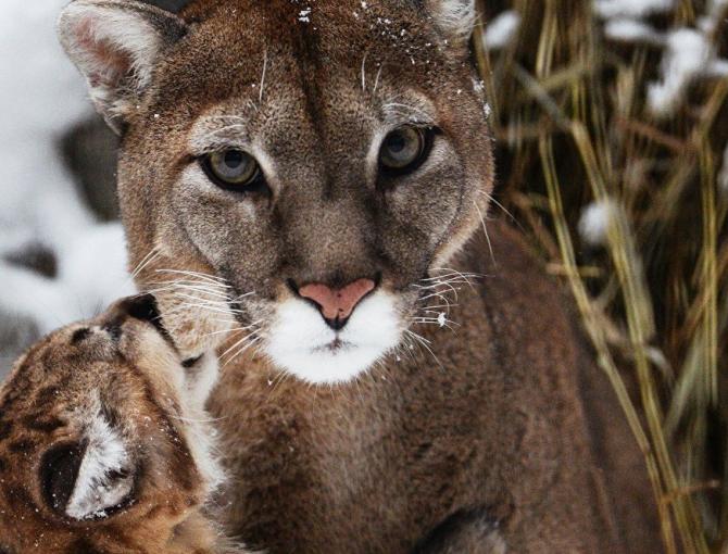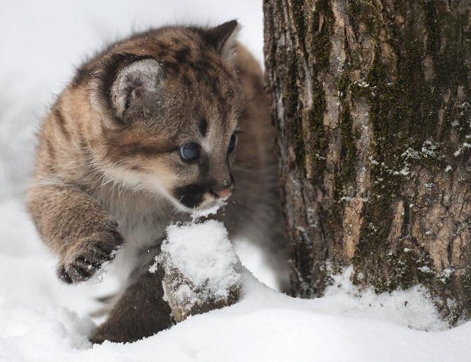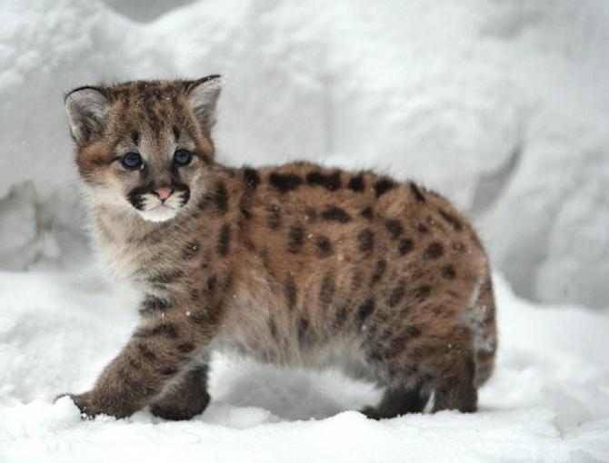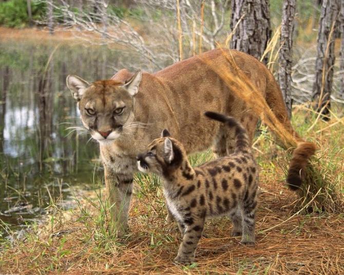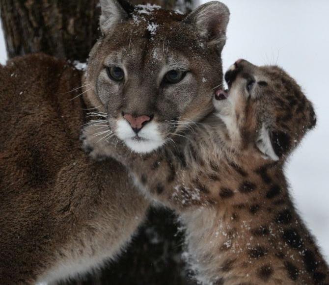 Большая и малюсенькая пумы.