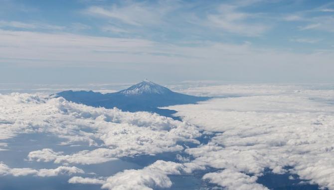 Белоснежные облака у горы.