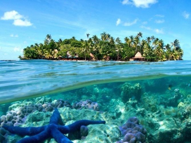 Тропический полуостров в море.