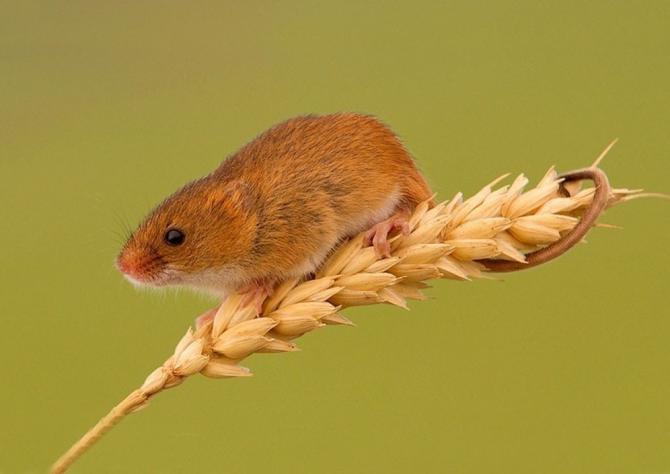Малюсенькая мышка на колоске.
