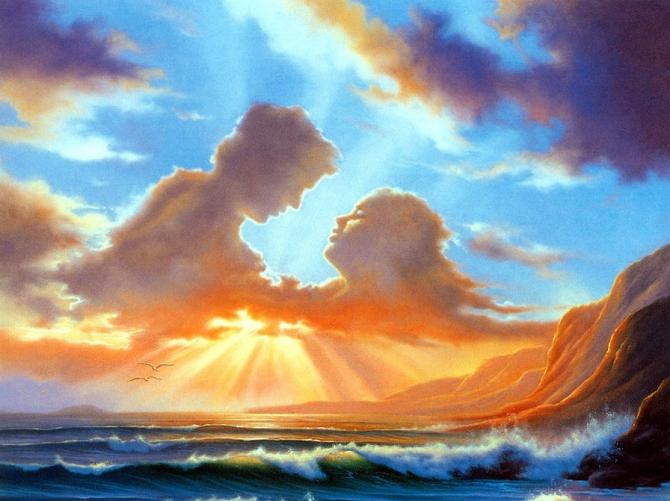 Вечерний поцелуй влюбленных.