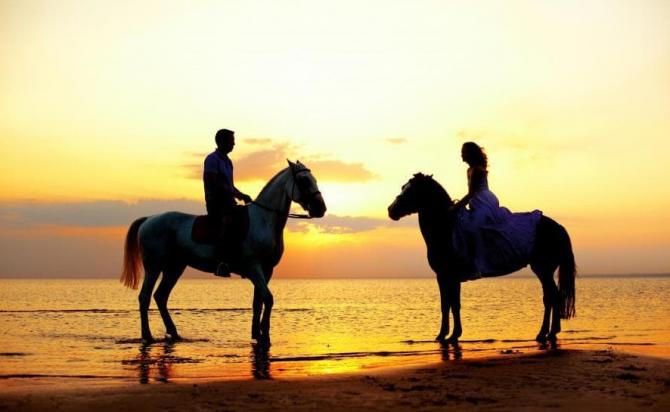 Влюбленные на лошадях у моря.
