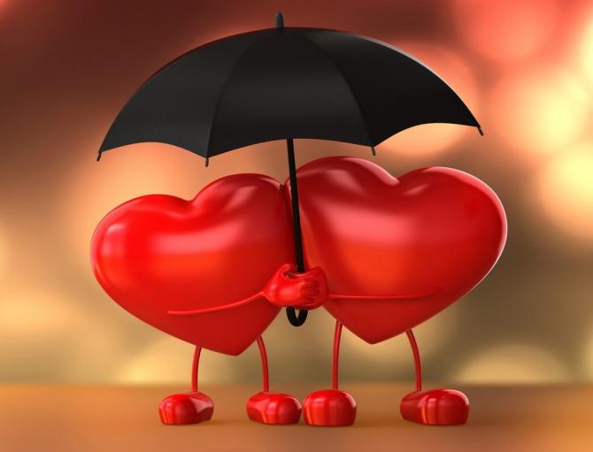 Два сердца под одним зонтиком.