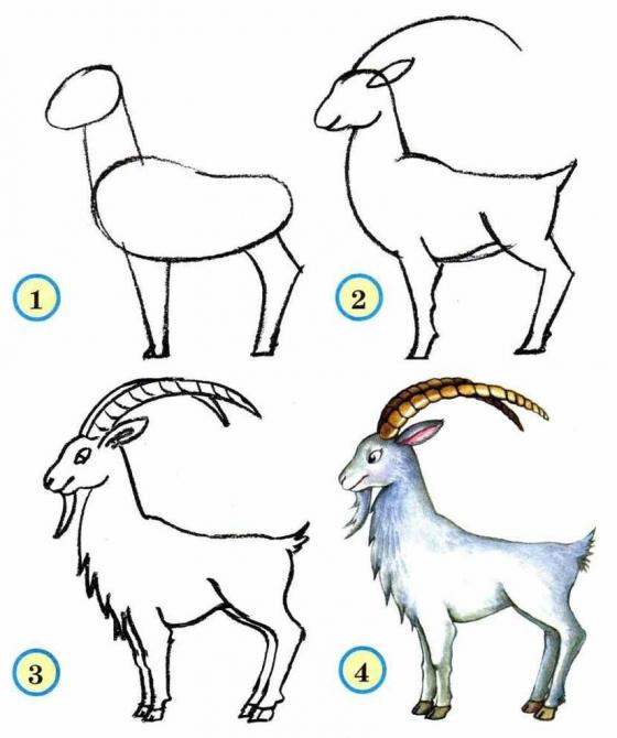 Набросок козла поэтапно.