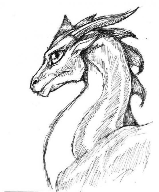 Набросок дракона карандашом.