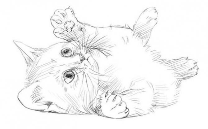 Набросок котика карандашом.