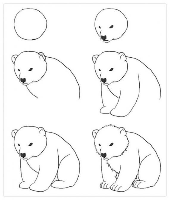 Набросок медведя карандашом.