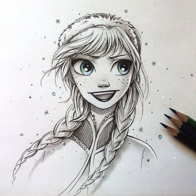 Дама из мультика карандашом.