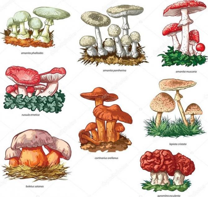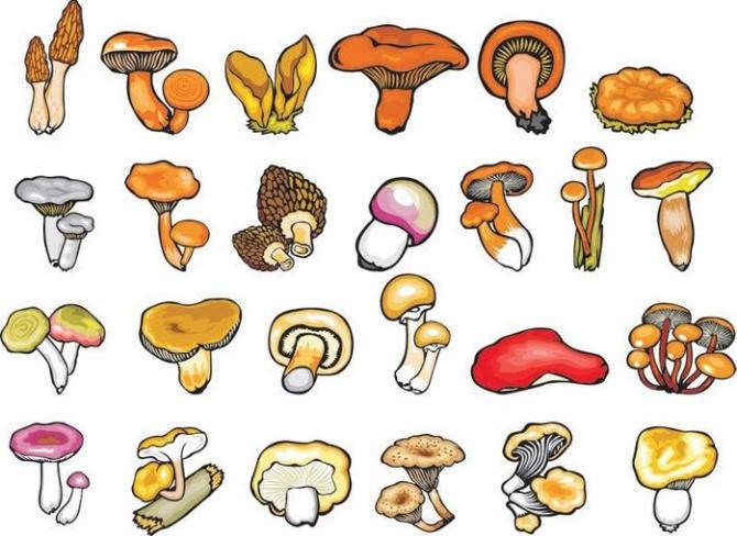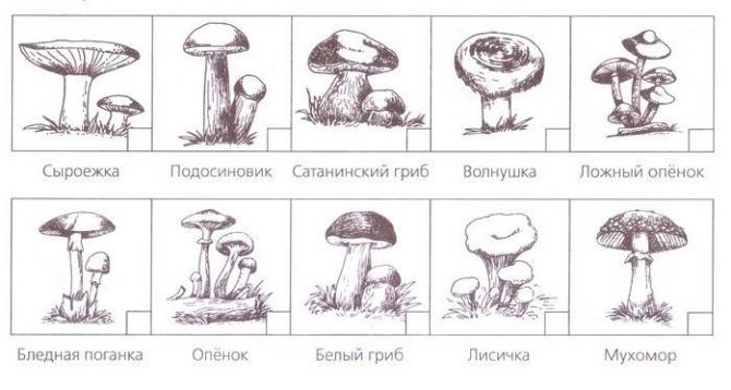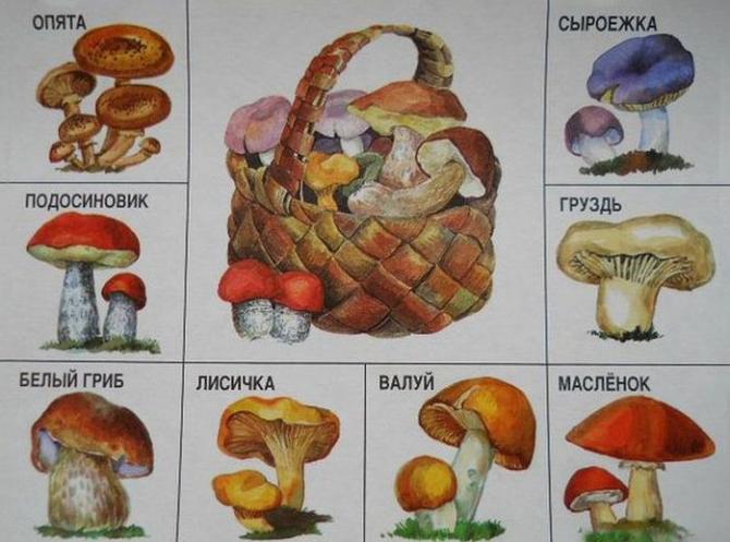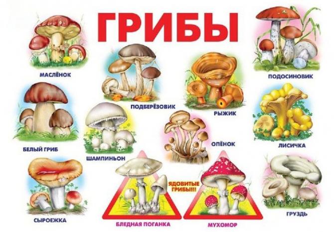 Рисунки грибов с наименованиями для деток.