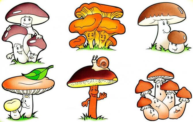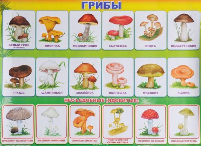 Грибочки с наименованиями для деток.