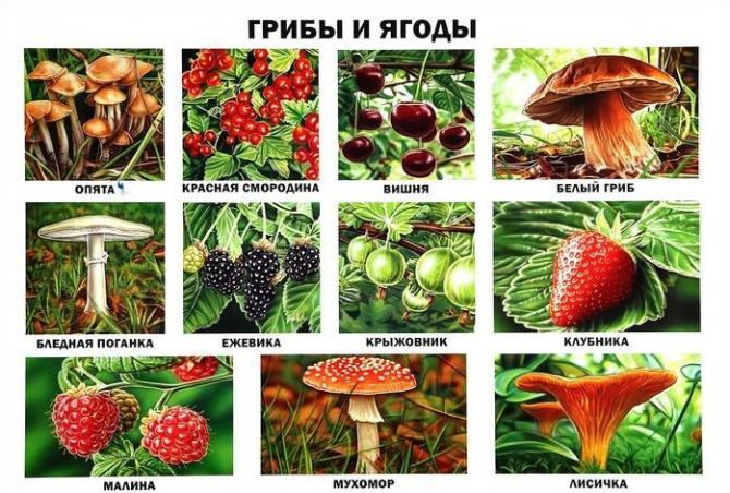 Грибы и ягоды.