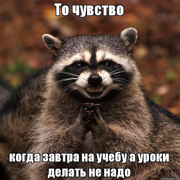 Забавной енот не будет делать уроки.
