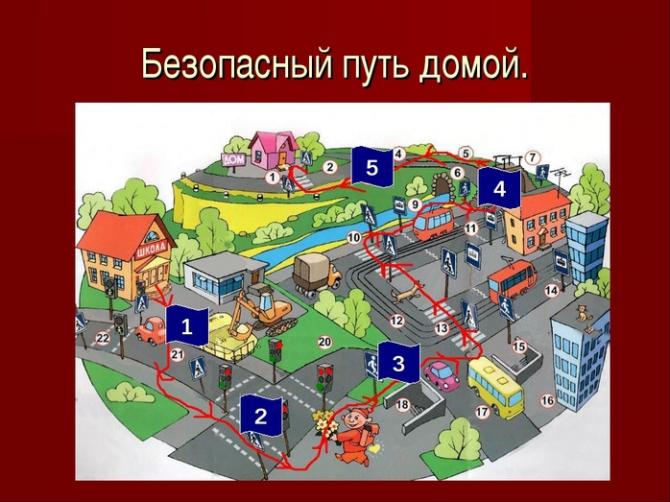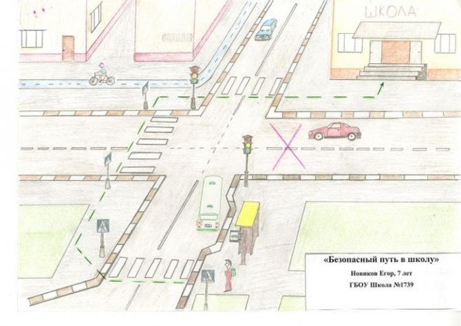 Дорога от дома до школы может проходить через проезжую часть. Поэтому главно, чтобы маршрут был очень безопасным. Пусть ребенок нарисует план от дома до пт назначения и обратно, тогда и вам будет безмятежней за его судьбу.