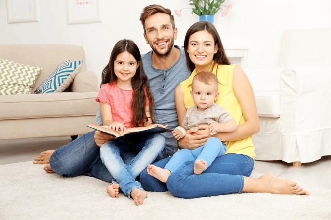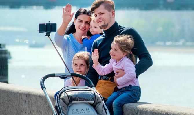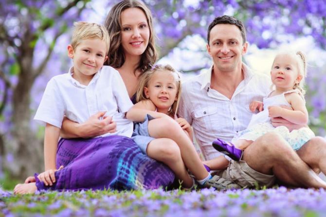 Трое деток с родителями.