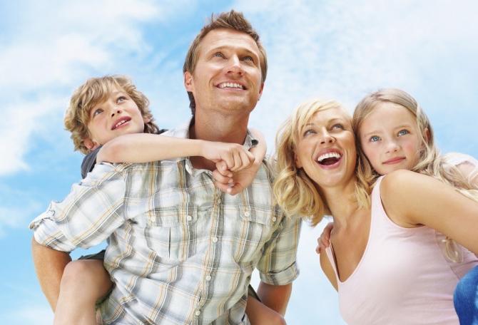 Счастливая семья отдыхает.