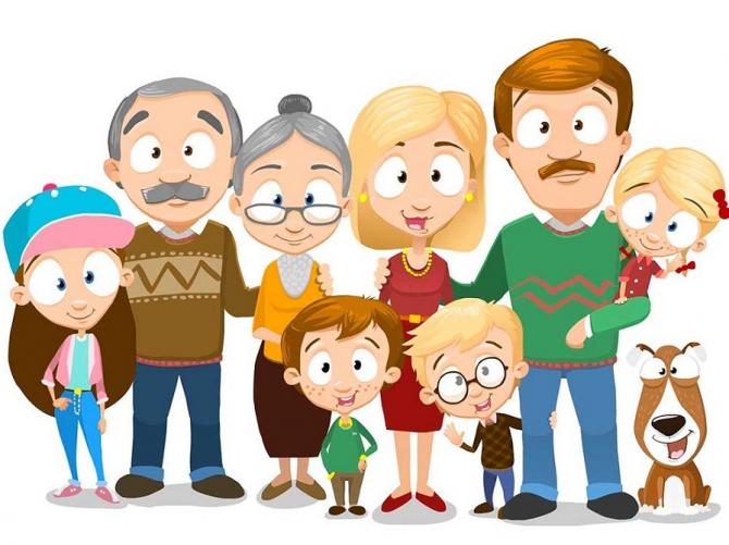 Дедушка, бабушка, супруг, супруга и ребенок.