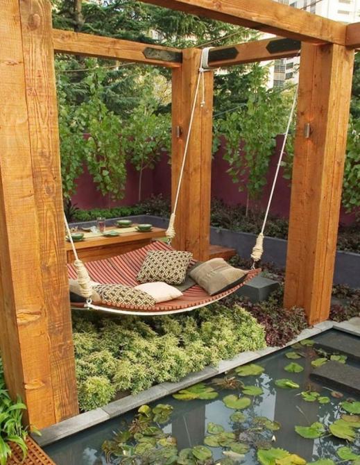 Большие качели у воды.