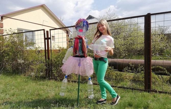 Прикольное пугало из бутылок.