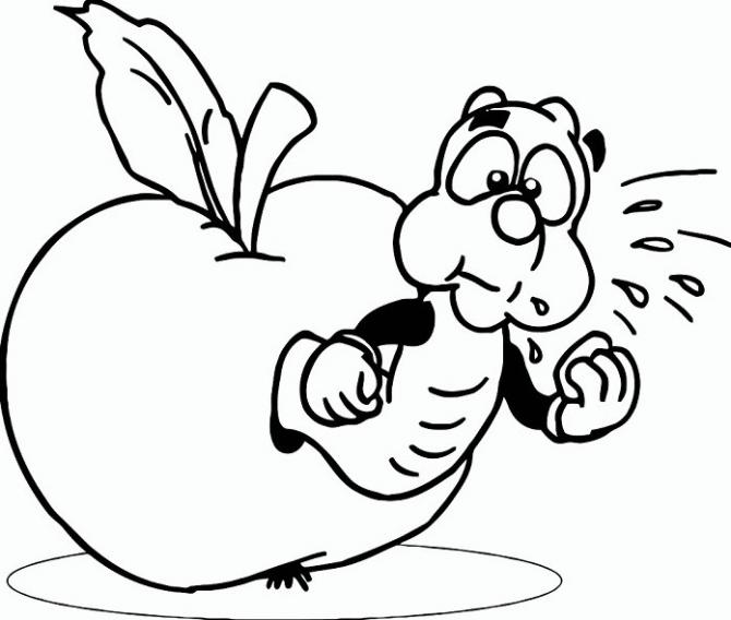 Прикольное яблоко карандашом с червем.