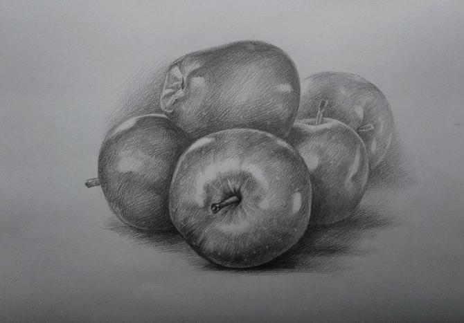 Красноватое яблоко карандашом.