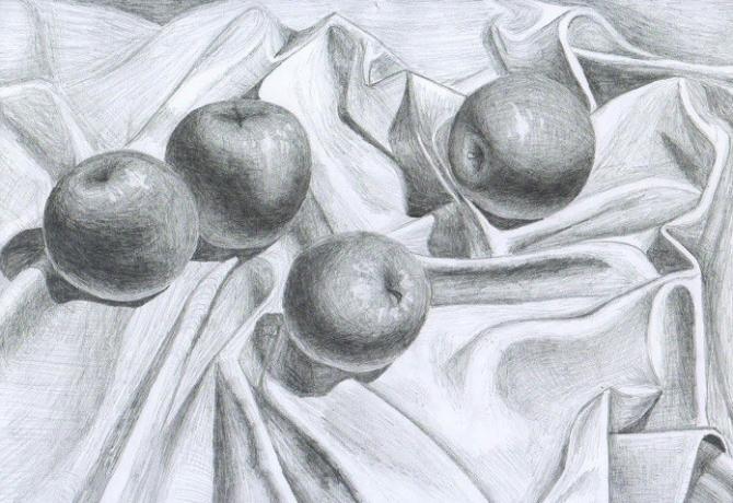 Легкий набросок яблок на столе.