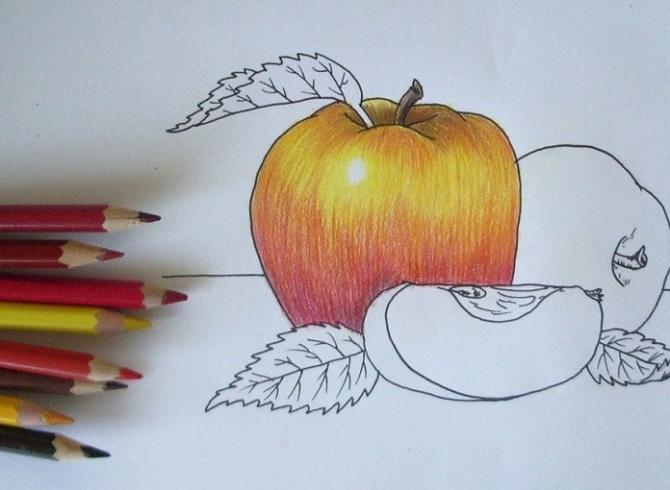 Красивое яблоко карандашом.