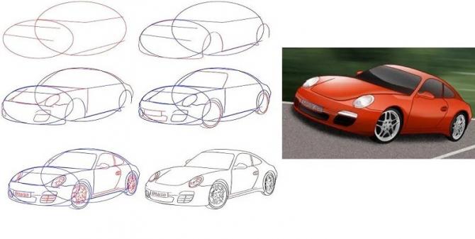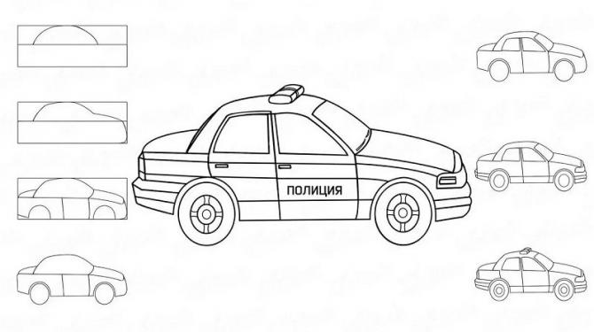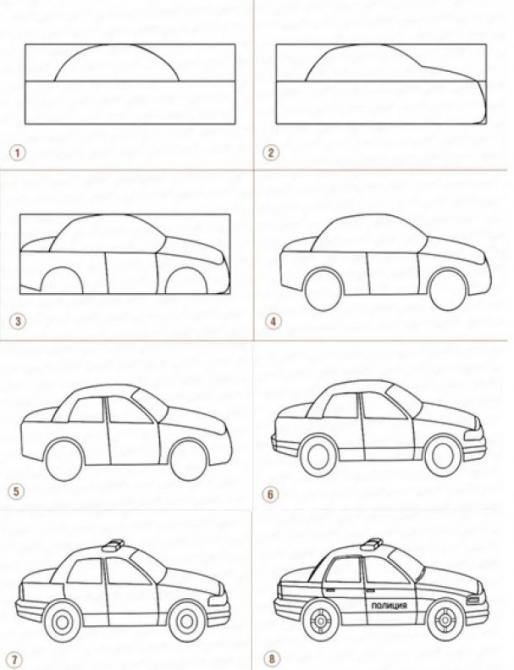 Срисовка машины поэтапно.