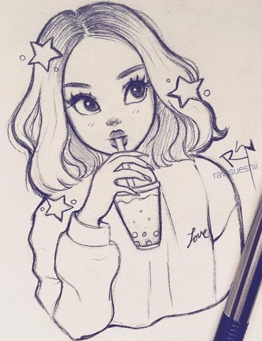 Аниме персонаж карандашом.