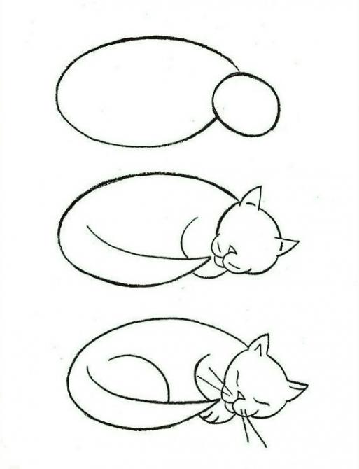 Кот для срисовки пошагово.