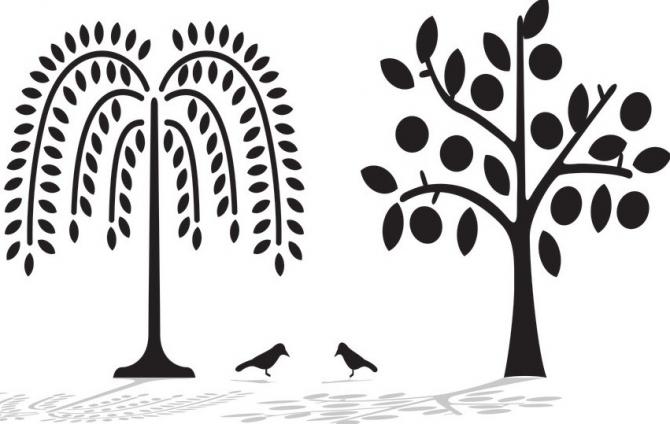 Очень красивые деревья, птицы.
