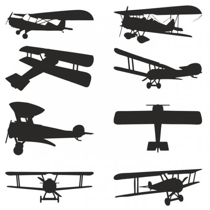 Силуэты самолетов в небе.
