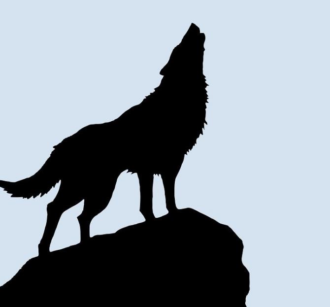 Волк воет на камне.
