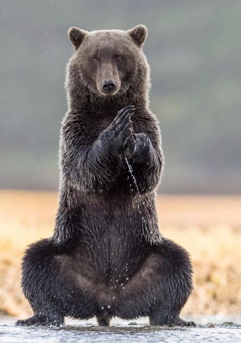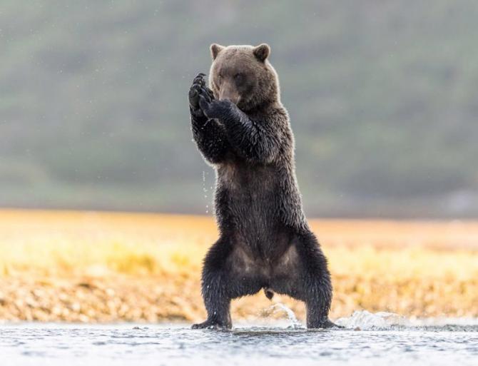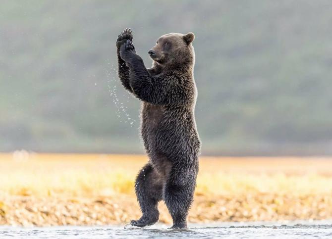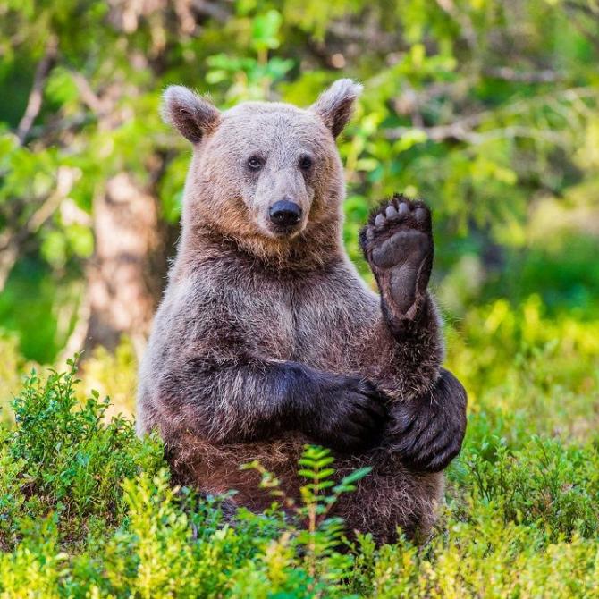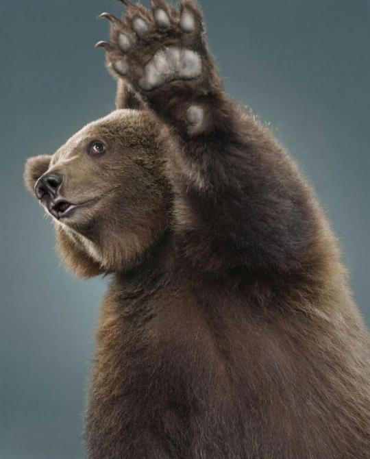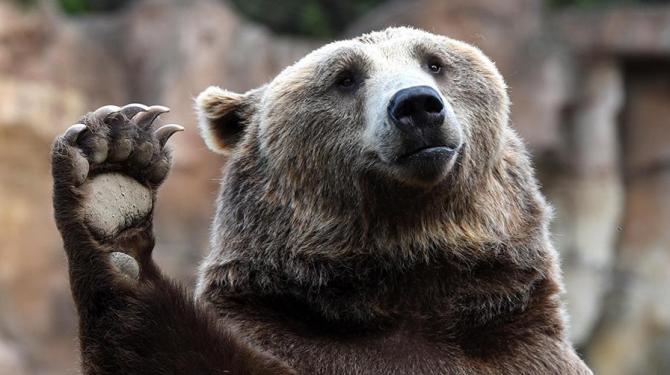 Медведь поднял лапу.