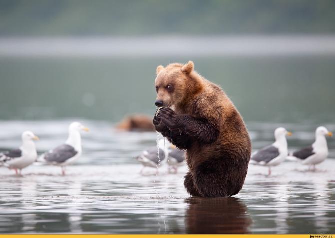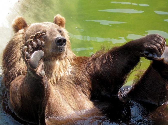 Медведь в воде.