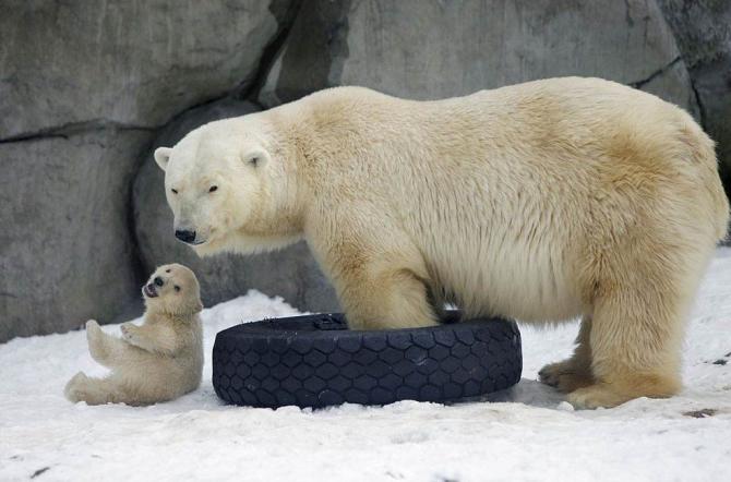 Белоснежная медведица с медвежонком.