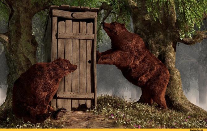 Медведи рядом с туалетом