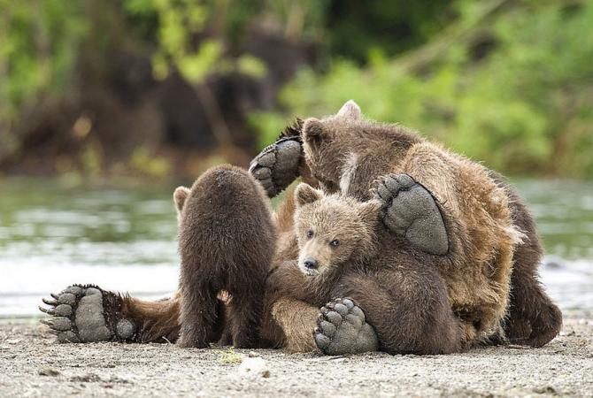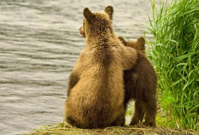 Медвежата у реки.