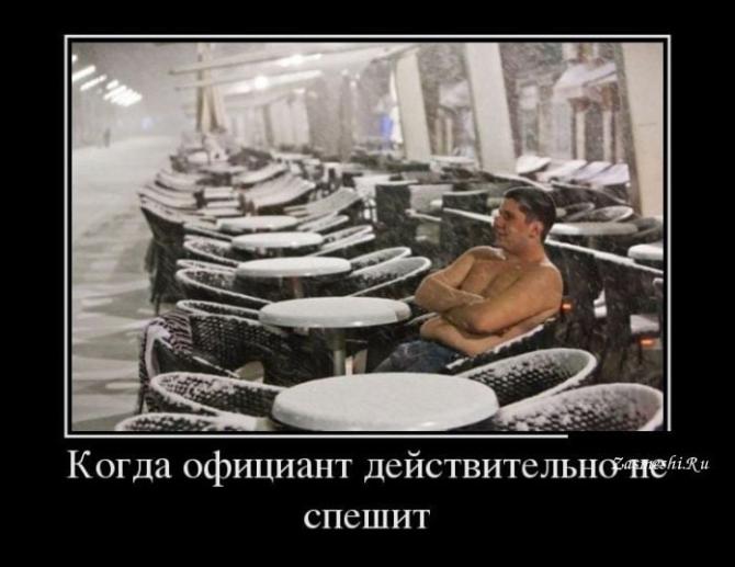 Официант не спешит.