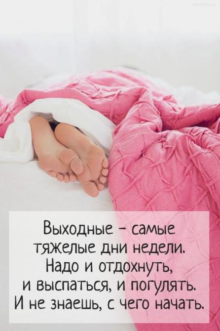 Опосля напряжённых 5 рабочих дней наступают выходные. Кто-то начинает их ждать теснее с начала новейшей недельки. Когда они наконец приходят, мы можем безмятежно отдохнуть. Ведь выходные на то и даны, чтобы поваляться в кровати подлиннее, сходить в спортивный зал, провести время с приятелями. Представляем вашему вниманию забавные фото картинки про выходные.