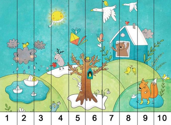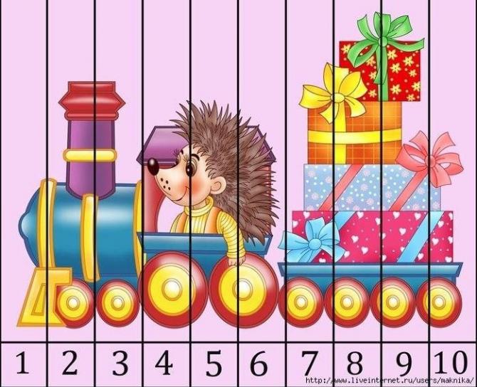 Математические пазлы помогут дошкольникам приготовиться к школе. Ведь благодаря этому формату обучения у малыша задействуется и воображение, чтобы представлять какой пазл будет последующим, и приобретенные познания о цифрах, благодаря которым он с легкостью соблюдает порядок конструкции фото картинки. Чтобы сыграть со своим малышом в эту игру, скачайте, распечатайте и разрежьте красивые рисунки из данной статьи.