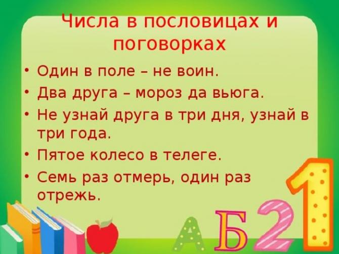 Все почаще и почаще дошкольники узнают о российском фольклоре при подготовке к школе. Совместно с цифрами учителя начальных классов знакомят их с русскими поговорками и поговорками. Будущие воспитанники представляют изображения персонажей и их события, которые складываются в интересные фото картинки. Пойдя в 1-ый класс школьники начинают заучивать стихи для того, чтобы развить свою память. Неким из них еще плохо дается складывание цифр, некие еще корявенько пишут в прописях, но у всех них теснее на слухи пословицы и присказки, в которых фигурирует эти самые числа.