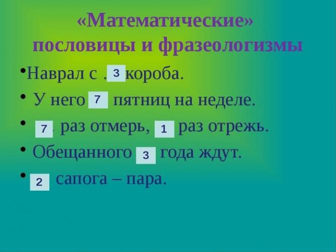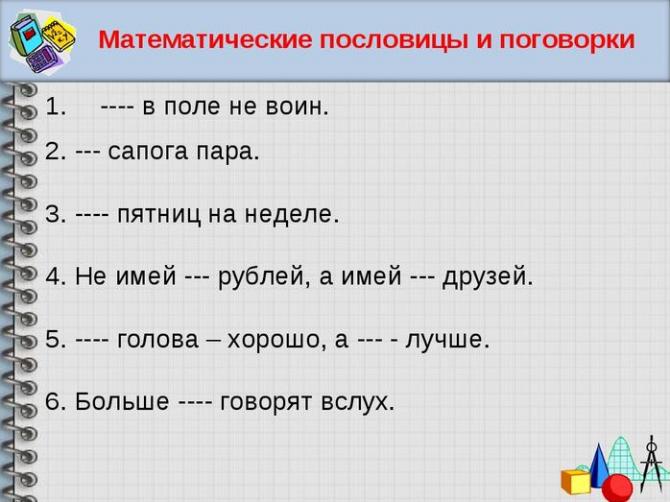 Математические пословицы и фразеологизмы.